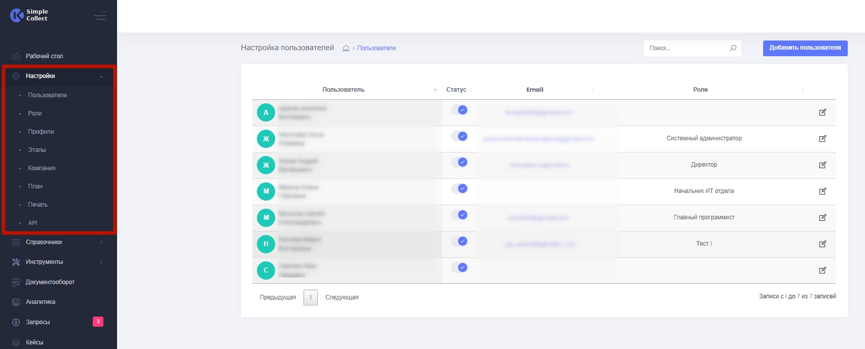 Администратор может ограничить права изменения/добавления информации, заблокировать или выдать права пользователю в зависимости от выполняемых им рабочих задач.