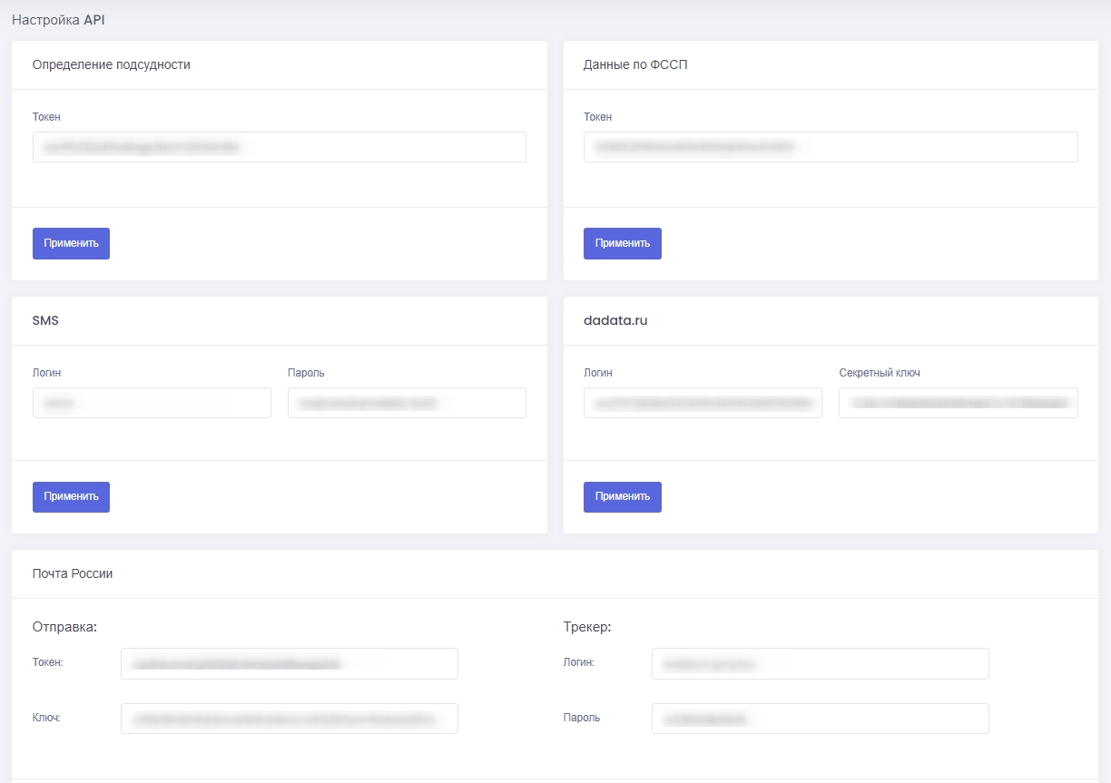 Для интеграции понадобиться заключить договор с поставщиком данных, получить токен и ввести информацию в заданное поле настройки API. Применить новые настройки.