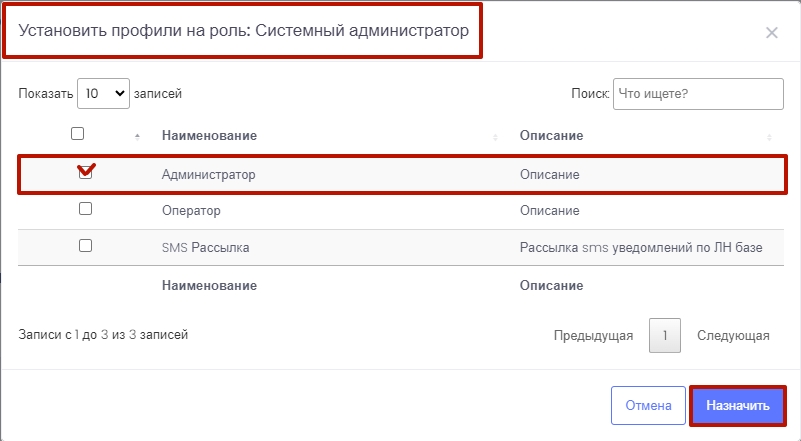 Через контекстное меню можно установить профиль с определенными правами на роль пользователя.