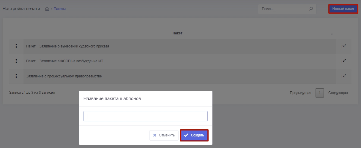 Для того, чтобы настроить новый шаблон, нужно создать Новый пакет, затем Новый шаблон.